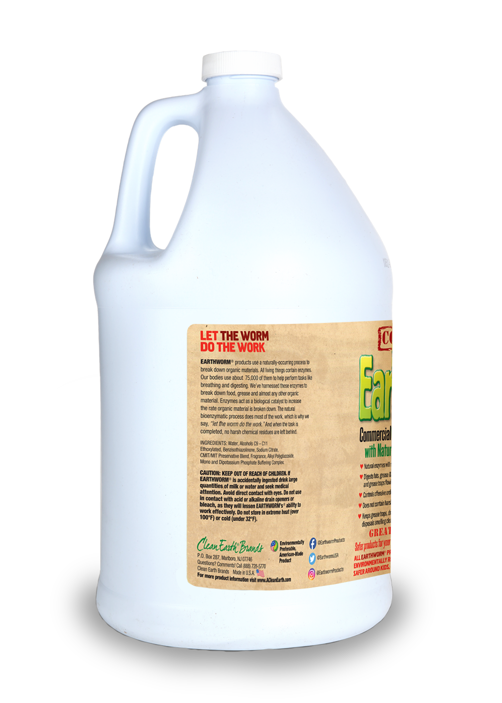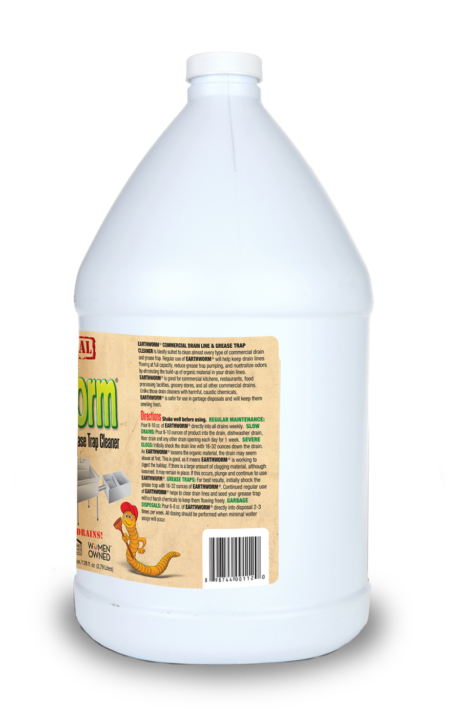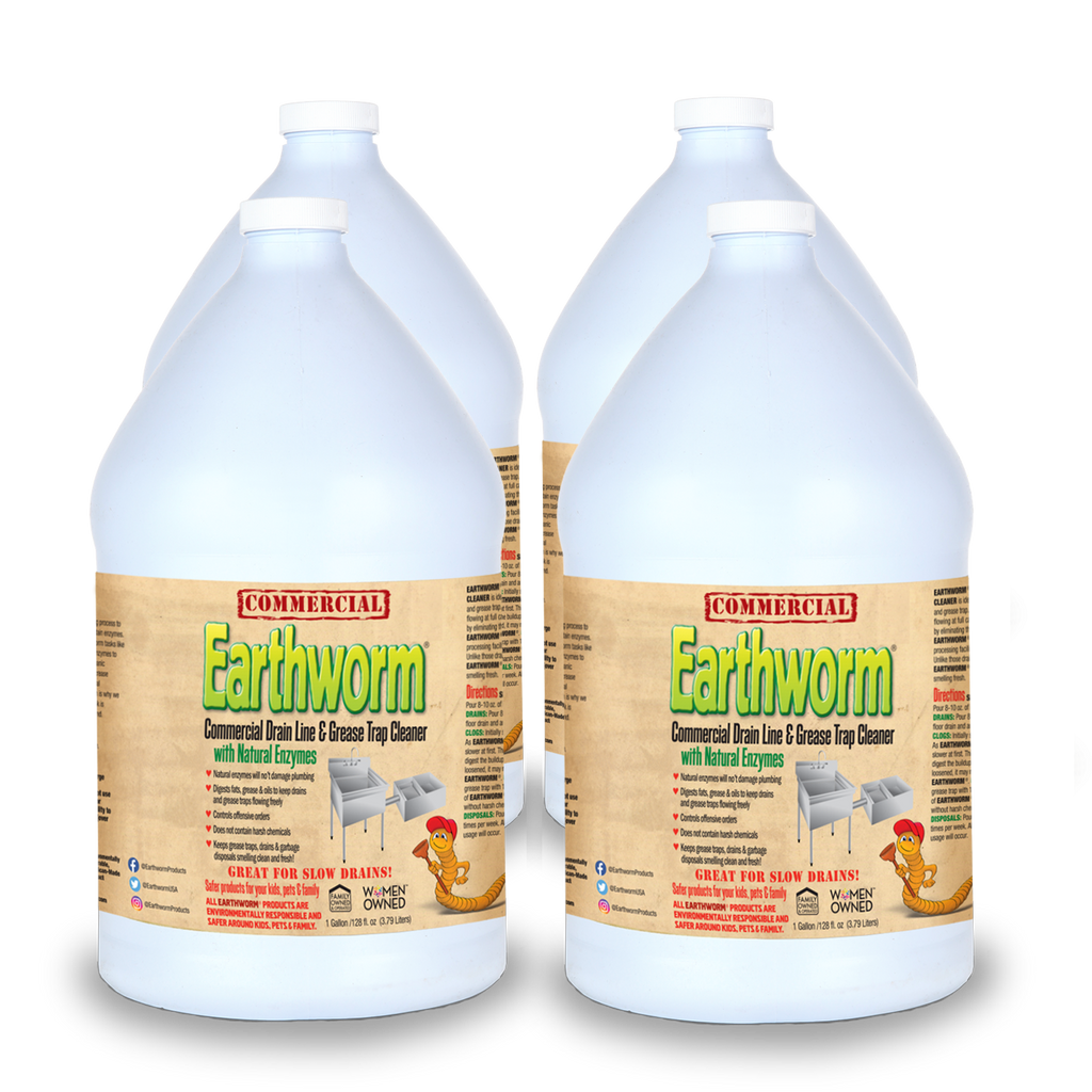 Earthworm® Commercial Drain Line & Grease Trap Cleaner uses a naturally-occurring process to break down organic materials. It's ideally suited to clean every type of commercial drain line and grease trap. Earthworm® Commercial Drain Line & Grease Trap Cleaner will keep drain lines flowing at full capacity, reduce grease trap pumping, neutralize odors and is environmentally safer than drain cleaners with harmful caustic chemicals. It will prevent clogs and overflow before they start by eliminating the build-up of organic material in drain lines and grease traps. It's made for commercial kitchens, restaurants, food processing facilities, grocery stores, and all other commercial drains. It's also safer for use in garbage disposals and will keep them smelling fresh.