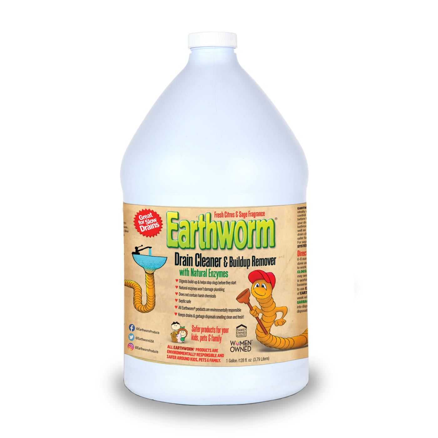Available in 32 oz, 64 oz, and 128 oz bottles, as well as in convenient cases, Earthworm® Drain Cleaner provides everything you need to maintain clear, odor-free drains while protecting your pipes and the environment.